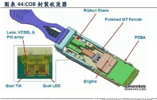 TOSA、ROSA和电芯片是光模块中成本比重最高的三个部分,分别占35%、23%和18%。TOSA、ROSA中的技术壁垒主要在于两方面:光芯片和封装技术。 一般ROSA中封装有分光器、光电二极管(将光压装换成电压......