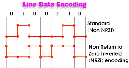 NRZI 编码(Non Return Zero Inverted Code),即反向不归零编码。 其实NRZI编码方式非常的简单,即信号电平翻转表示0,信号电平不变表示1;例如想要表示00100010(......